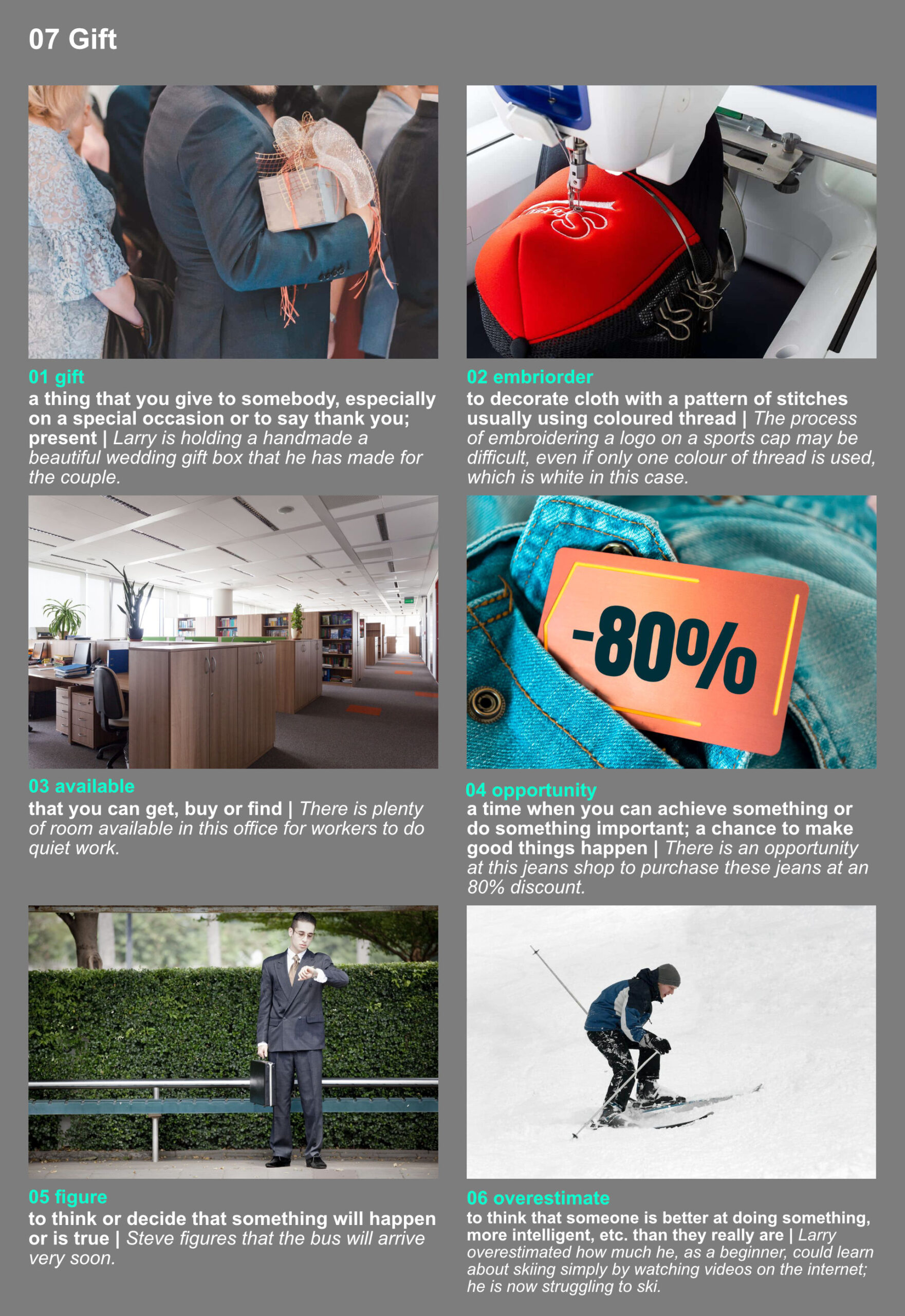 Keegan (Maine, USA) 8db hétköznapi, mégis komplex témában mondja el gondolatait. Ezek a témák a nyelvvizsgák tipikus “nagy témái”. Az IELTS nyelvvizsgán 5 percen át kell tudnod beszélni a témáról. Keegan ezt helyenként átlépi, de mivel a tartalom nyelvtanulói szempontból is értékes, nem beszélve az amerikai kultúrával, élettel kapcsolatos sok-sok érdekes információval, így a tananyagban az 5 percet liberálisan kezeltük.