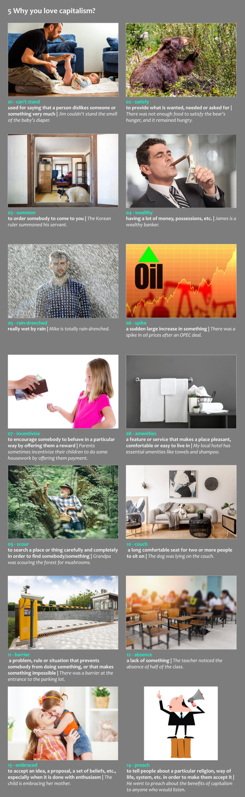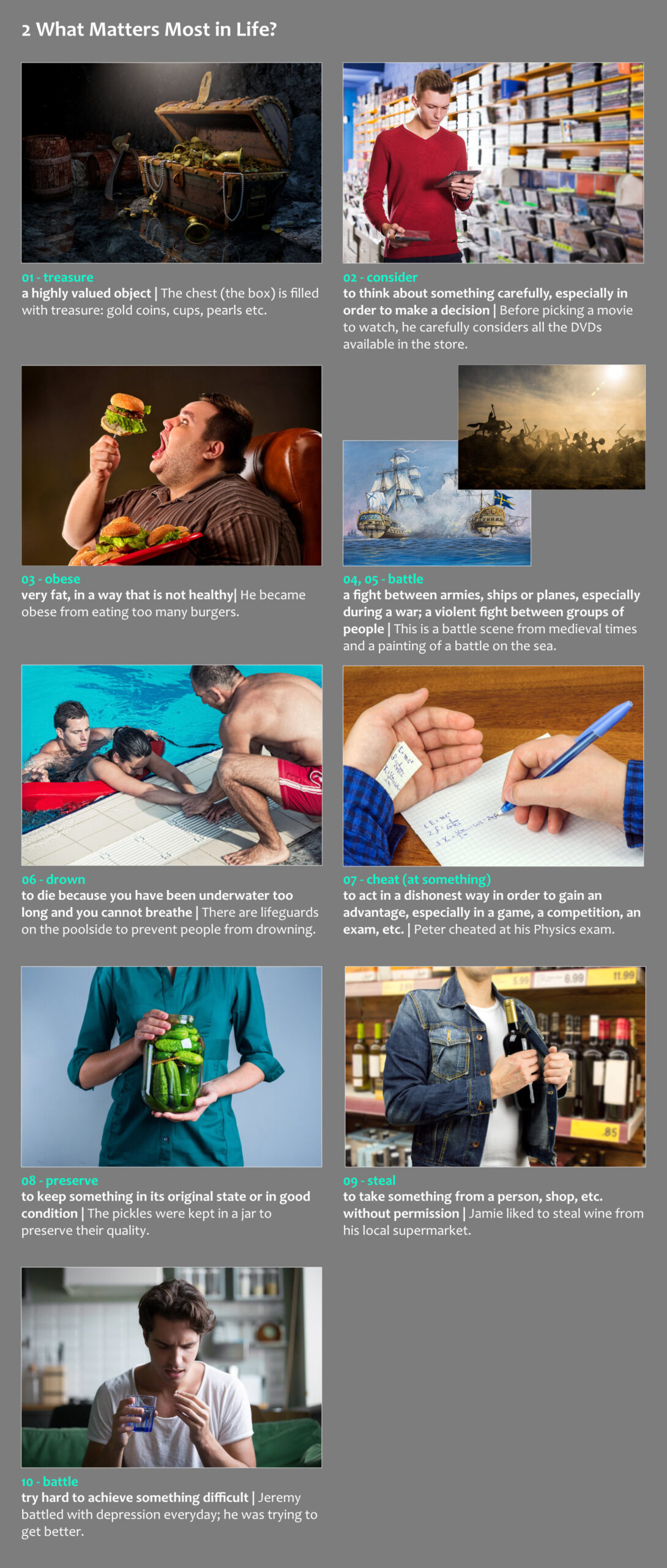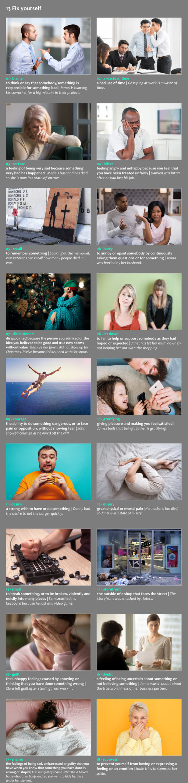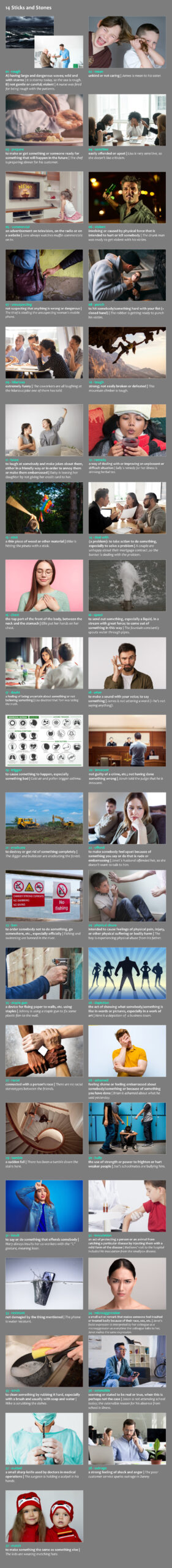 Ez a videóválogatás 14db izgalmas, gondolatébresztő témát jár körül 5 perces prezentációkban. A gyakorlat végeztével közel 600 szóval növeled szókincsedet. Fontos, hogy a kézikönyvekben leírtak szerint dolgozz az anyagon.