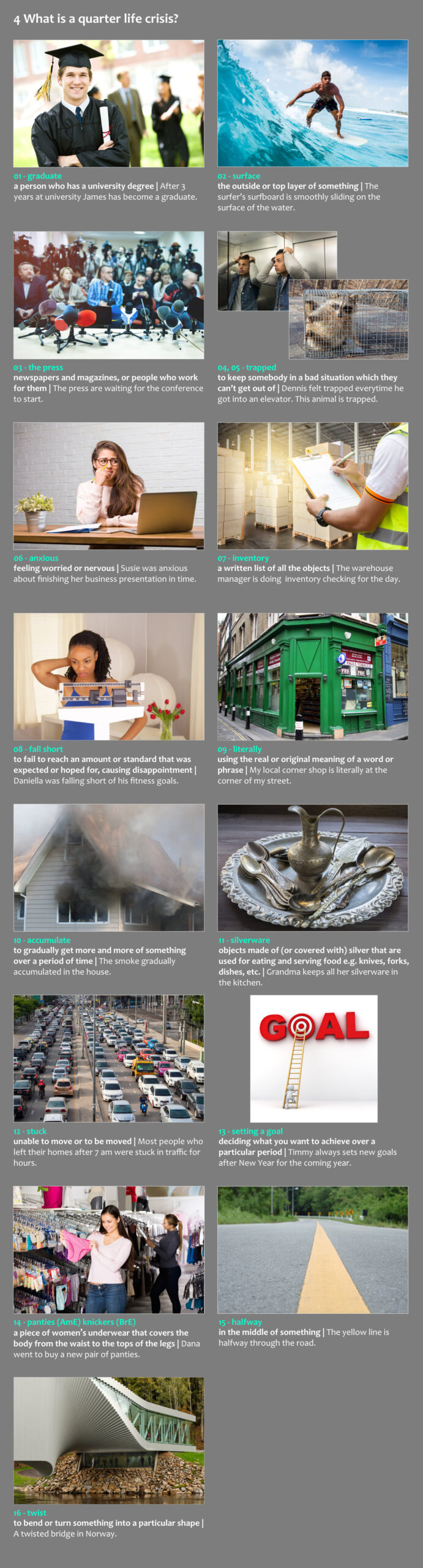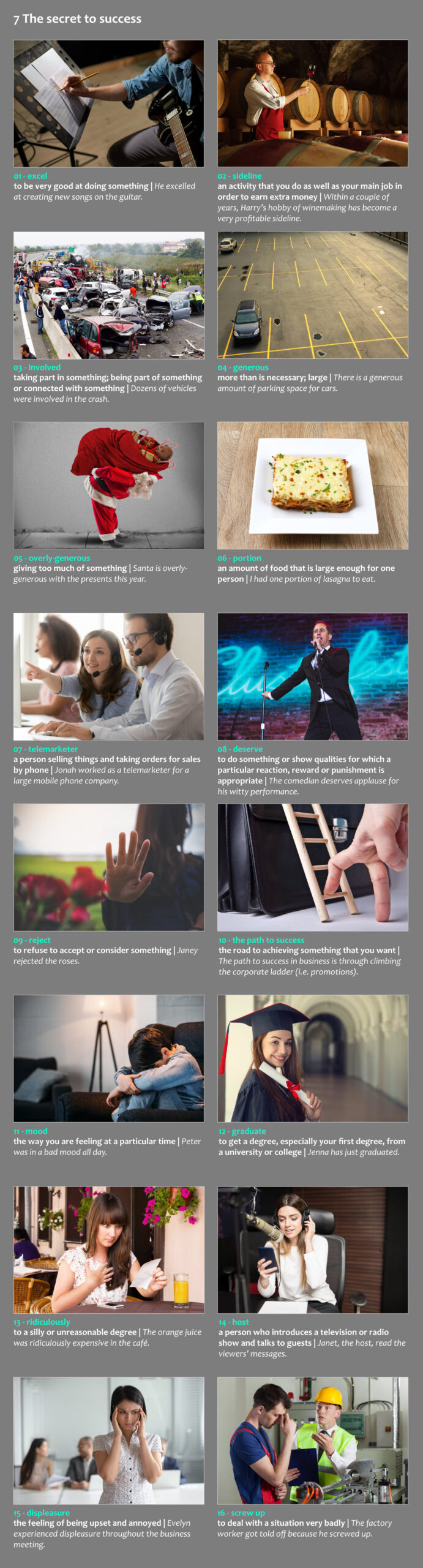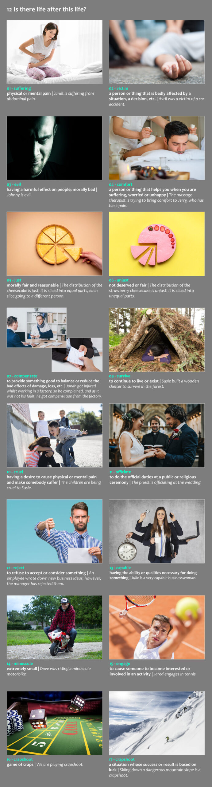 Ez a videóválogatás 14db izgalmas, gondolatébresztő témát jár körül 5 perces prezentációkban. A gyakorlat végeztével közel 600 szóval növeled szókincsedet. Fontos, hogy a kézikönyvekben leírtak szerint dolgozz az anyagon.
