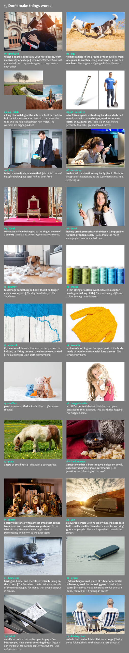 screw up8: to deal with a situation very badly | Look! The hotel receptionist is shouting at the customer! Man! She’s screwing up.