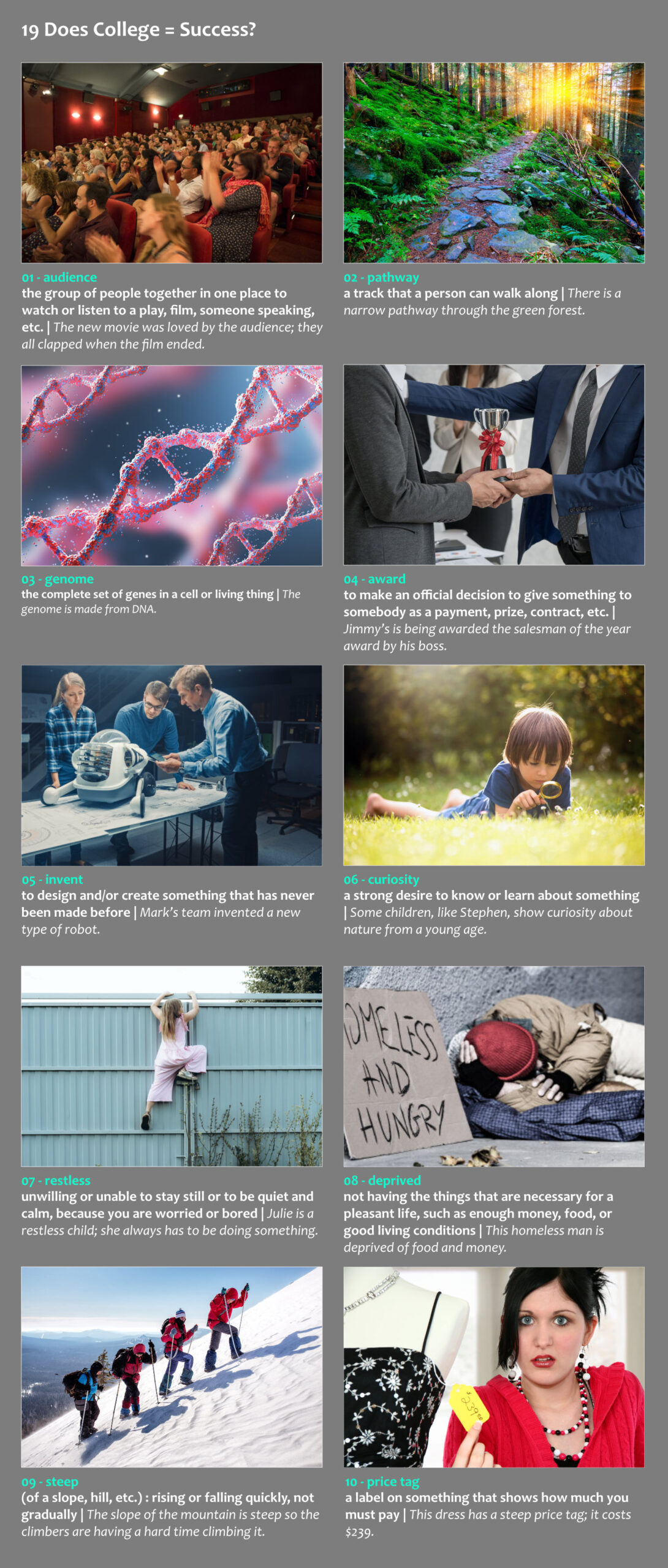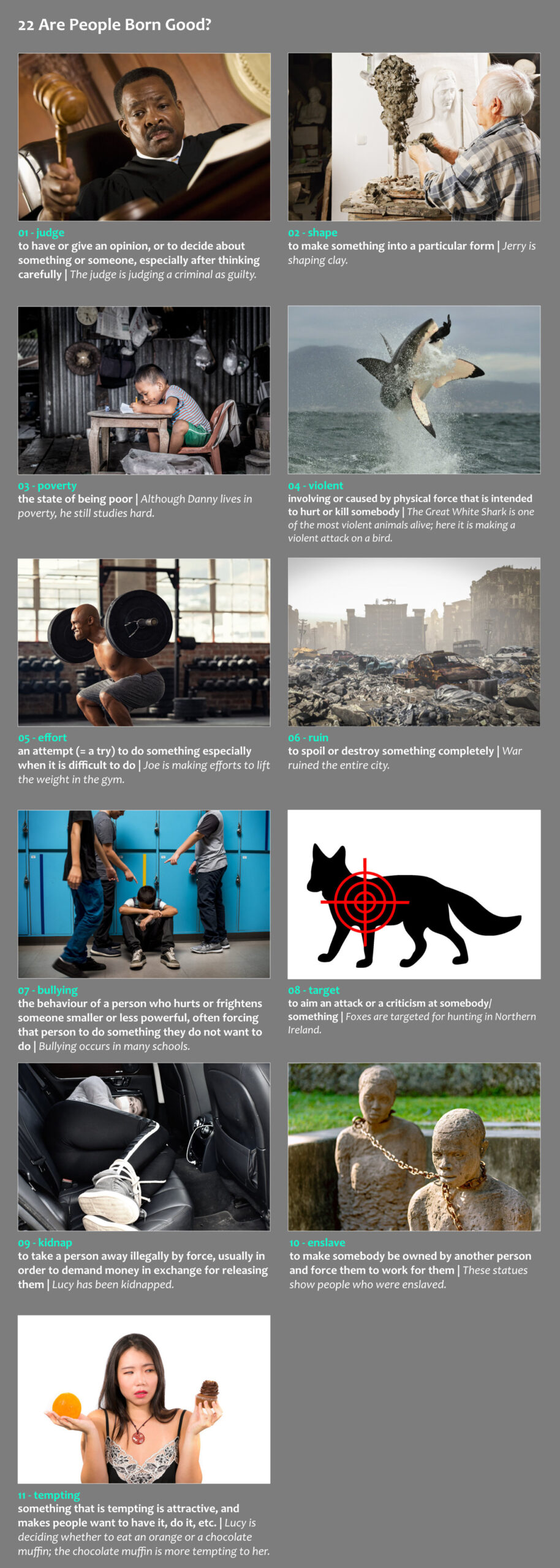 Ez a videóválogatás 14db izgalmas, gondolatébresztő témát jár körül 5 perces prezentációkban. A gyakorlat végeztével közel 600 szóval növeled szókincsedet. Fontos, hogy a kézikönyvekben leírtak szerint dolgozz az anyagon.