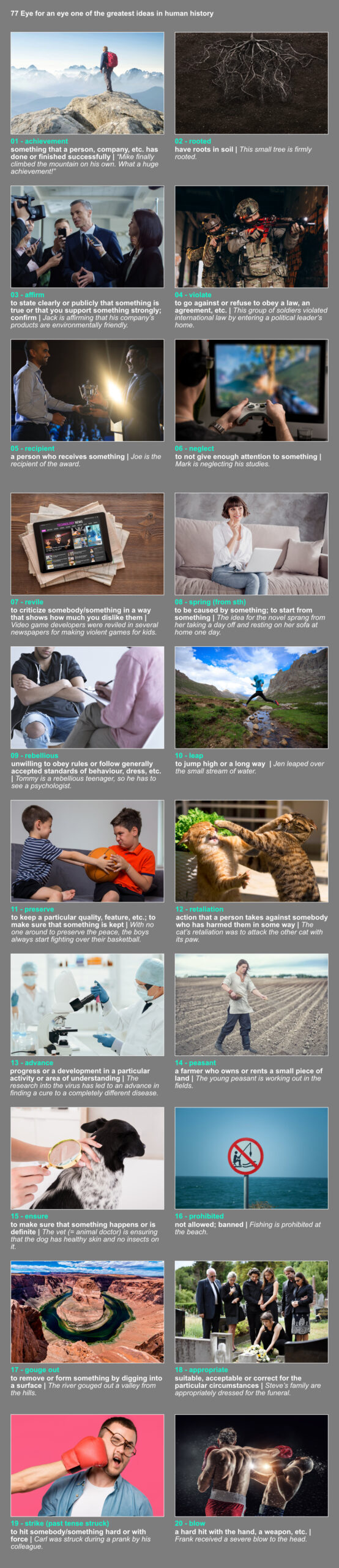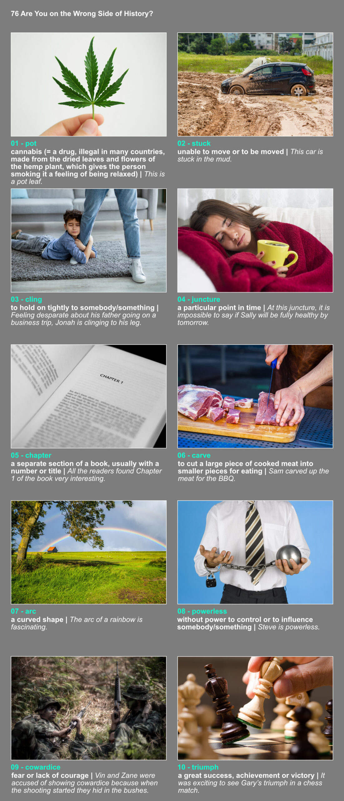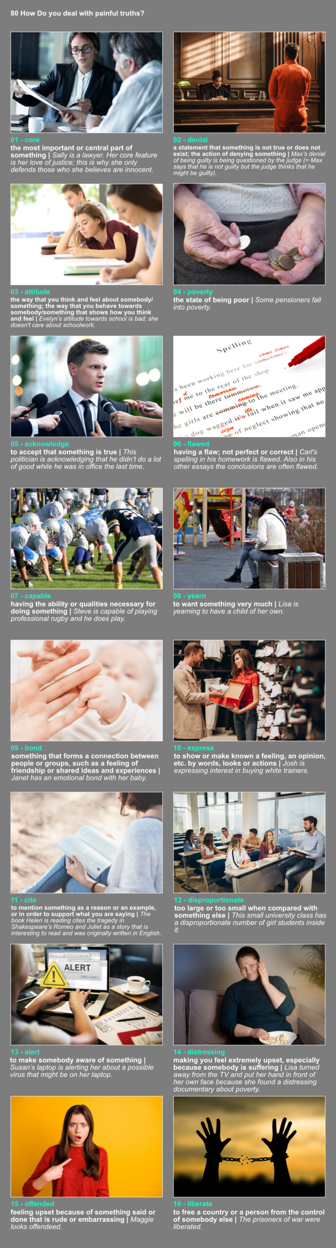 Ez a videóválogatás 14db izgalmas, gondolatébresztő témát jár körül 5 perces prezentációkban. A gyakorlat végeztével közel 600 szóval növeled szókincsedet. Fontos, hogy a kézikönyvekben leírtak szerint dolgozz az anyagon.