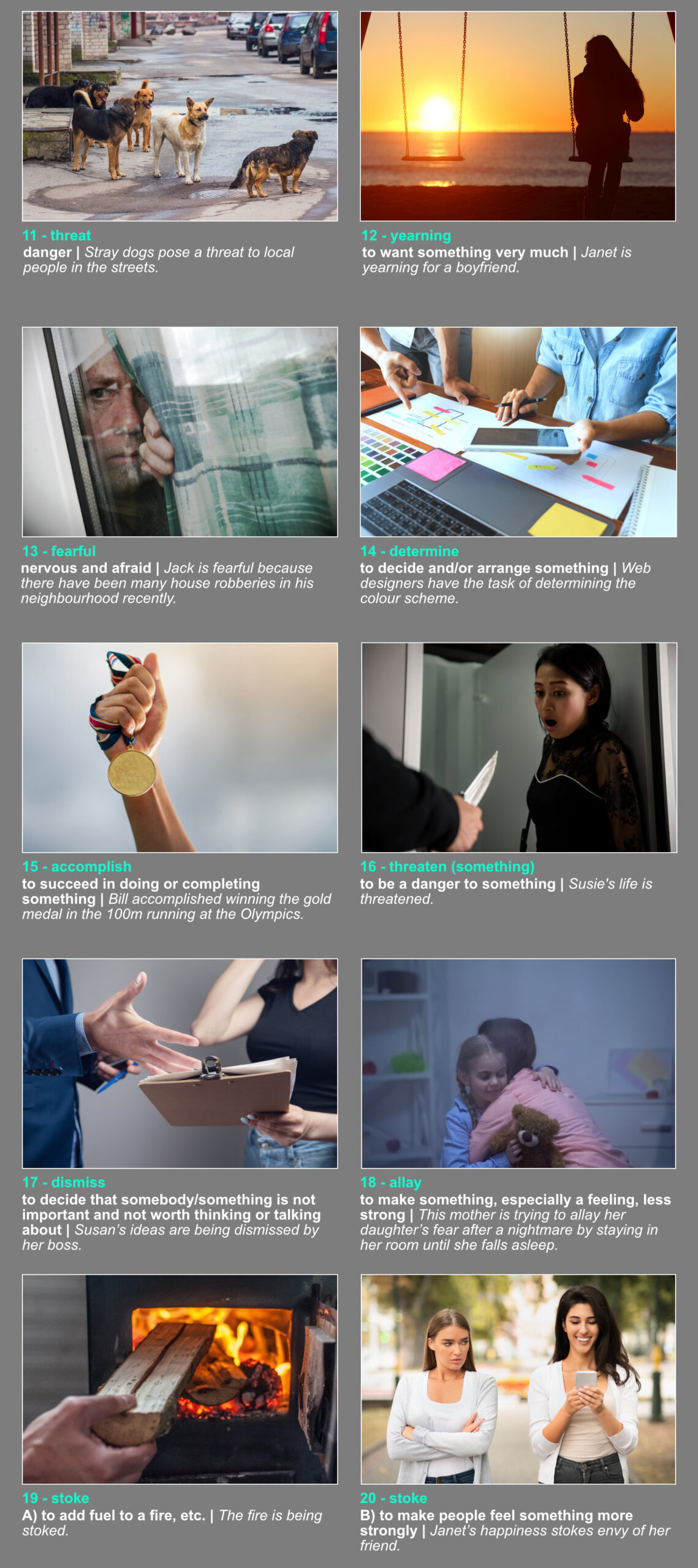 - B) to make people feel something more strongly | Janet’s happiness stokes envy of her friend. (Sool: ez 2 külön kép: szó és def mindkettő alá, A és B jelzéssel, ahogy itt van.)