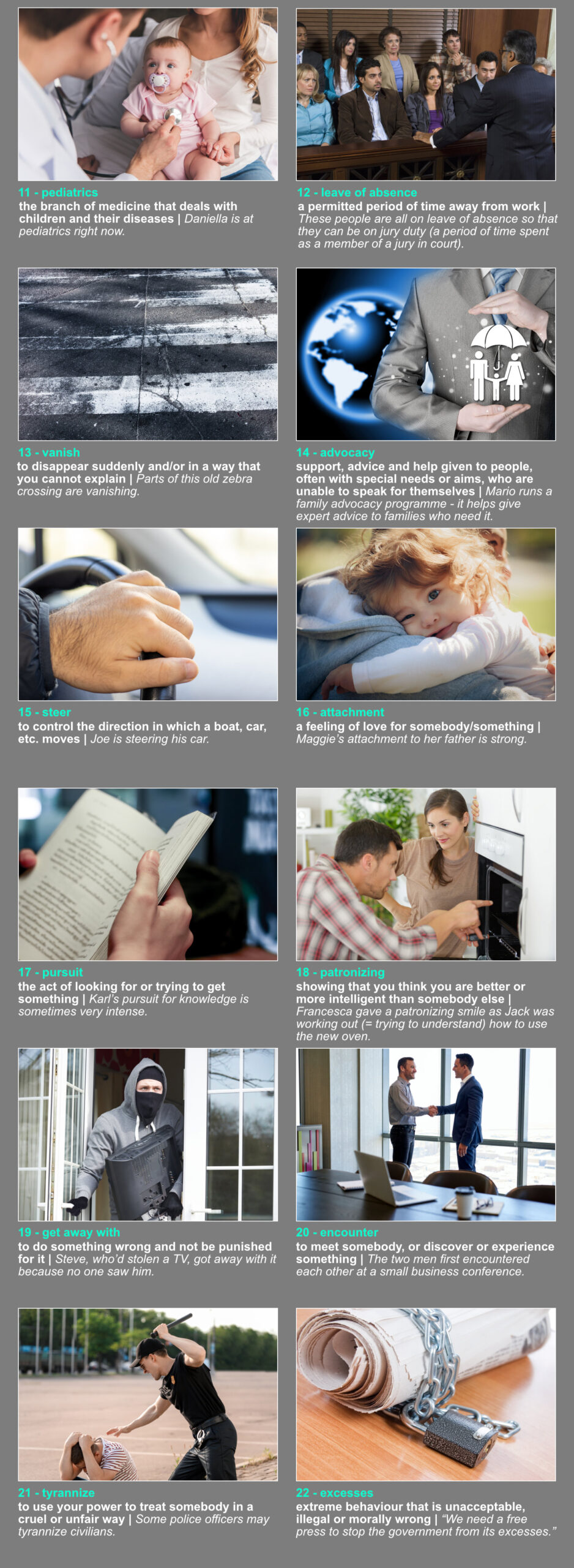 confiscate15: to officially take something away from somebody, especially as a punishment | Stella’s phone is being confiscated by her father.