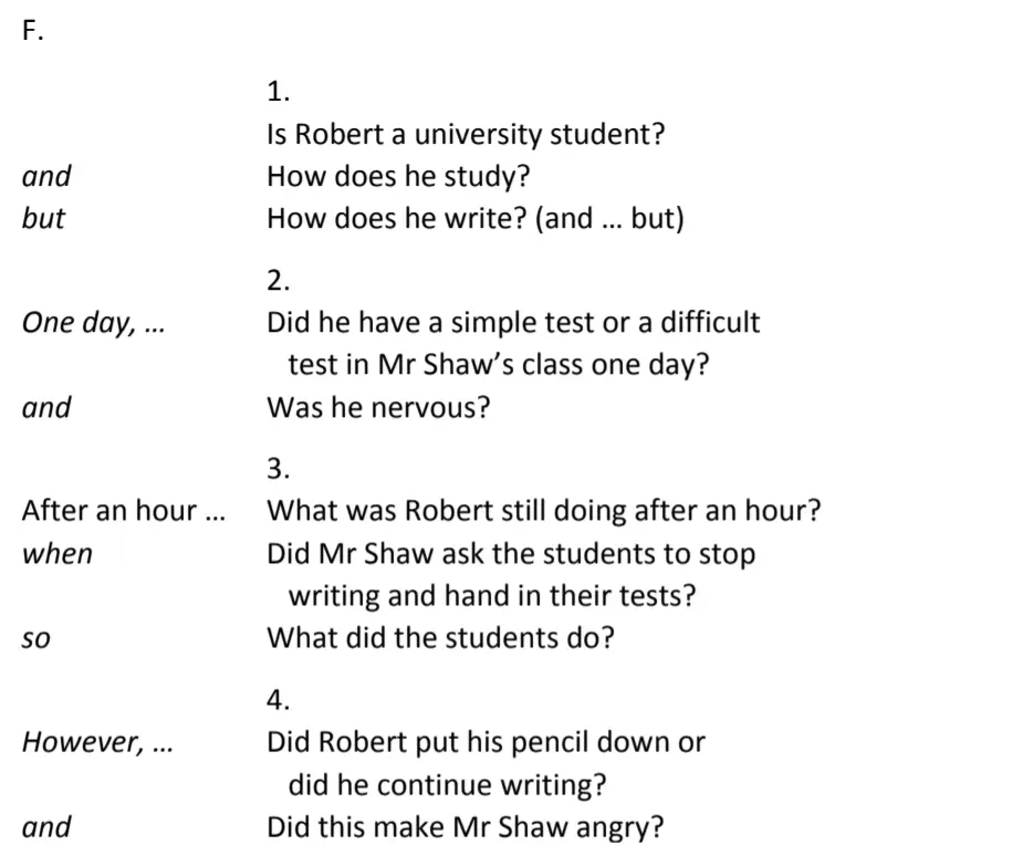 One day, Robert took a very difficult writing exam in Mr Shaw’s class. It was an important exam, and he was nervous. The students had one hour to finish the exam. All the students were writing for the whole hour.