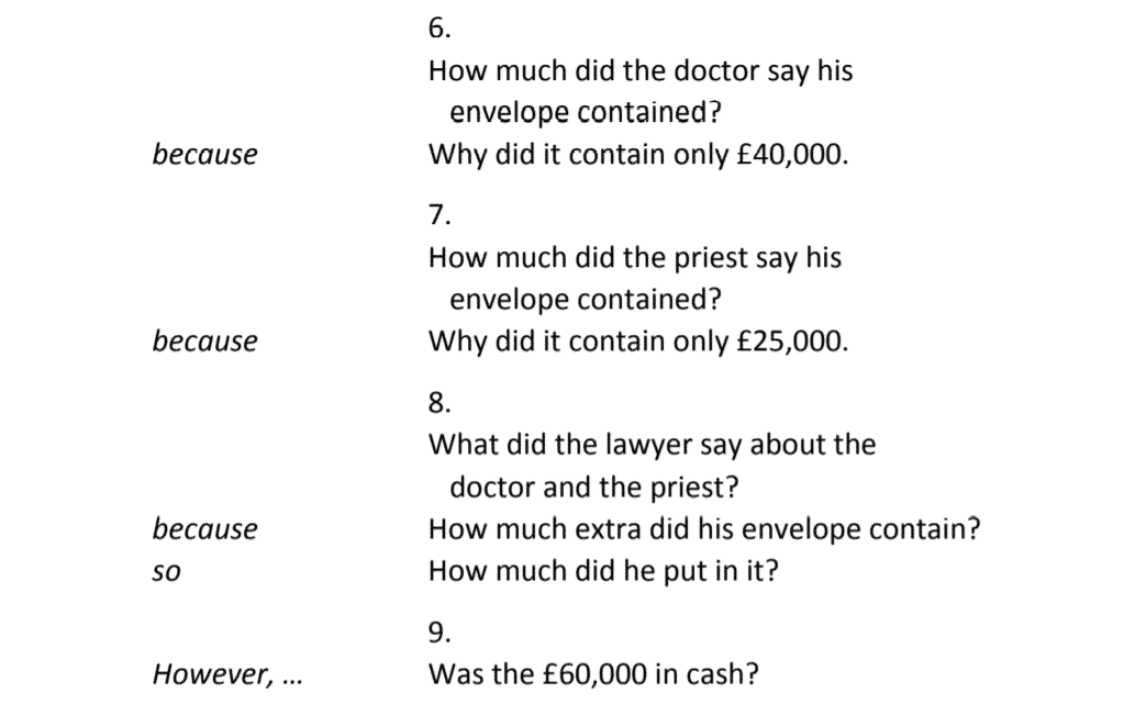 gave his doctor, his lawyer, and his priest envelopes full of money. Each