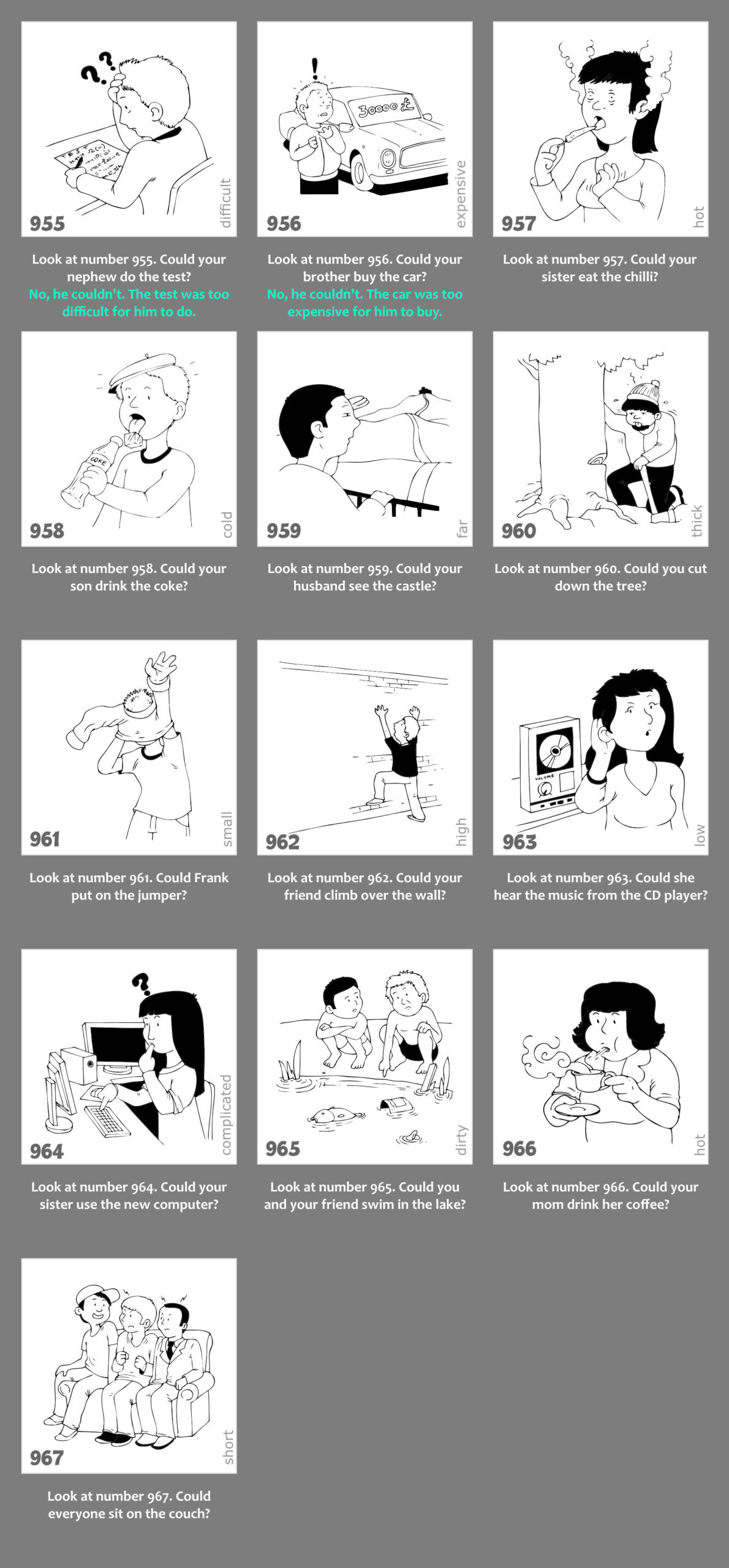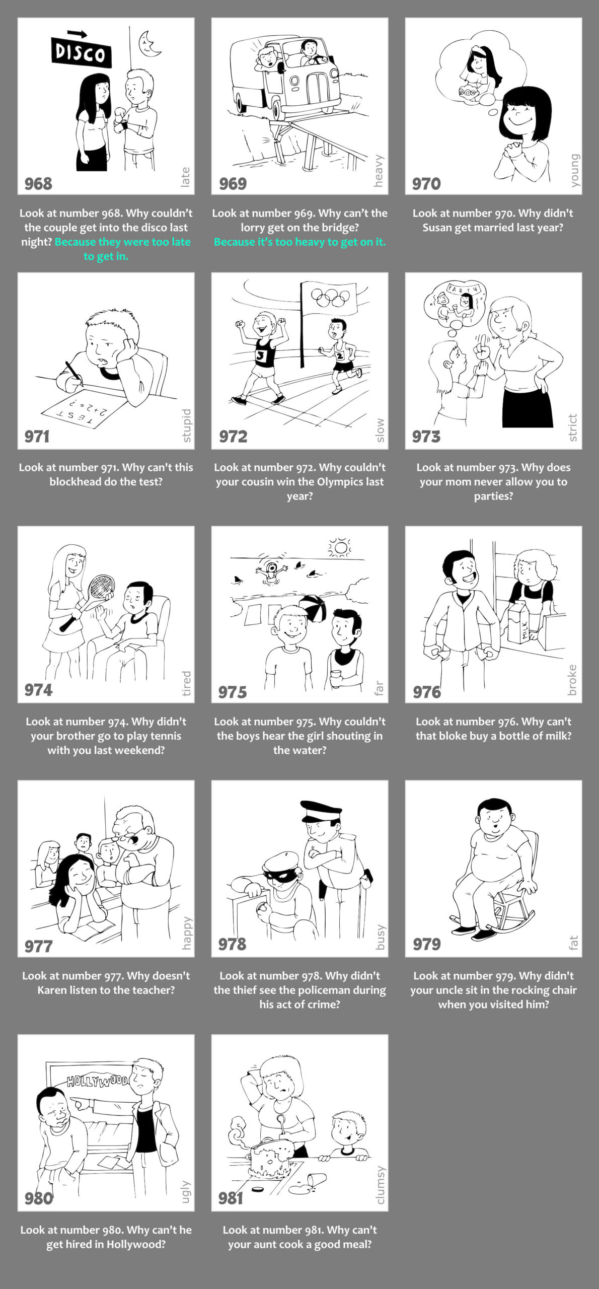 1. Nyisd le a gyakorlat kapcsolóját. Látni fogod a gyakorlathoz kapcsolódó képanyagot, valamint a képek alatt a kérdéseket. Az első 2 példa válaszai mintát adnak a választípusra, amit a gyakorlat elvár. Minden képen megtalálod a kulcsszót is, így minden egyes szó leírása tisztázott.