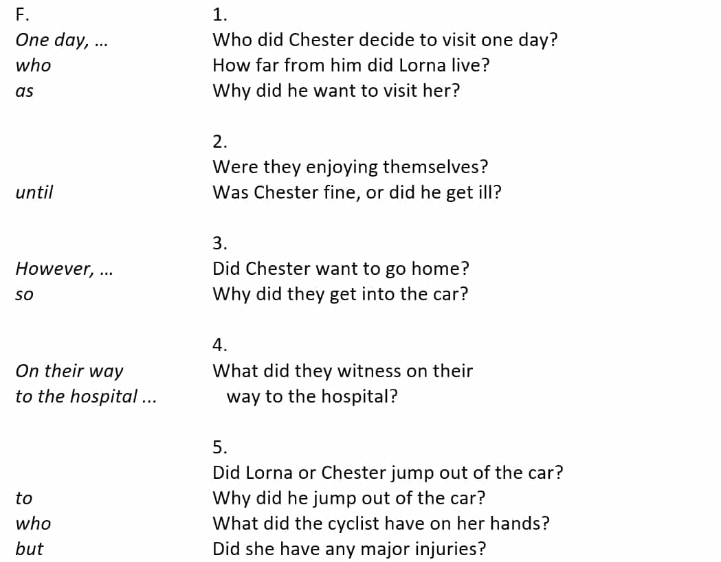 27. Did Chester jump out of the car to run to the cyclist’s aid, or did he remain in the car to call the emergency services?