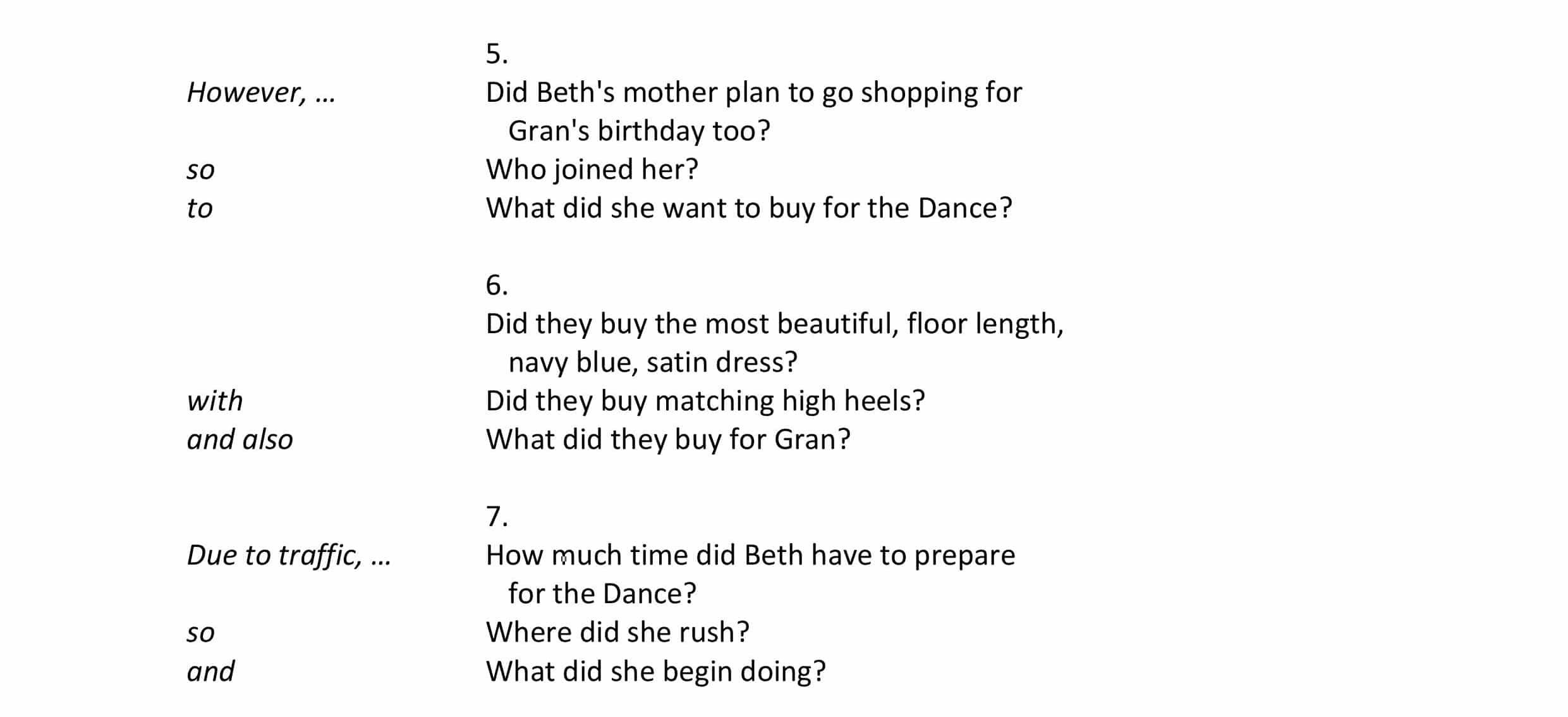However, Beth’s mother planned to go shopping for Gran’s birthday too, so Beth joined her to buy her own dress for the Dance.