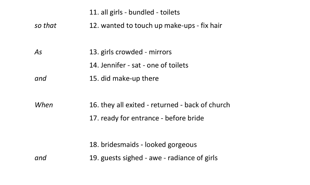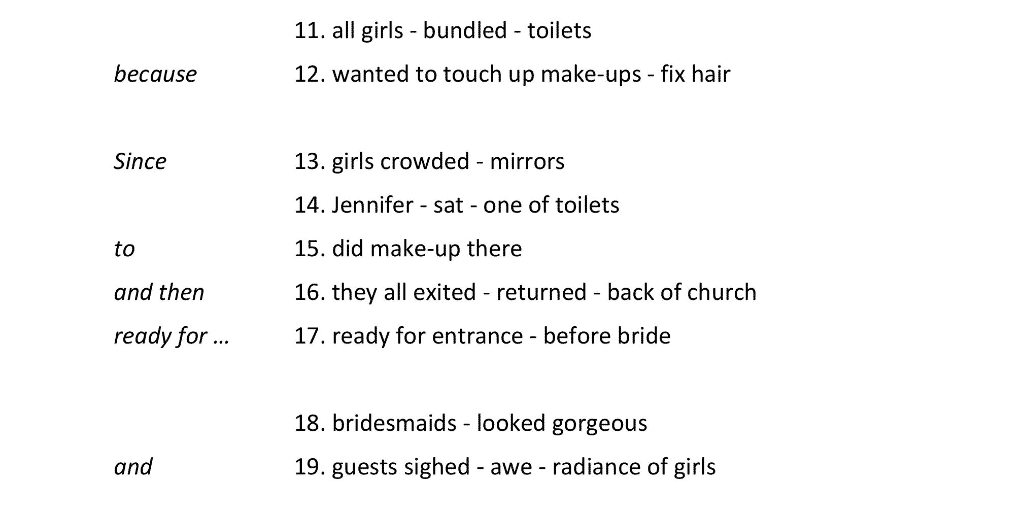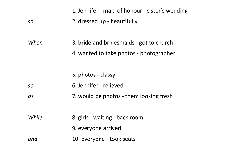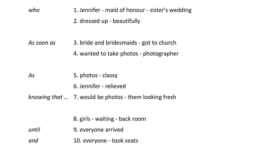 Jennifer was the maid of honour for her sister’s wedding. She wore a light blue dress, which had a wide neckline, short sleeves and a long bow that ran down the back of the dress, almost reaching the floor. The bride and her bridesmaids had got to the church before the guests and groom arrived to take photos with the photographer. The photos came out looking very classy, and Jennifer was relieved that there would at least be some photos of their hair and makeup looking fresh.