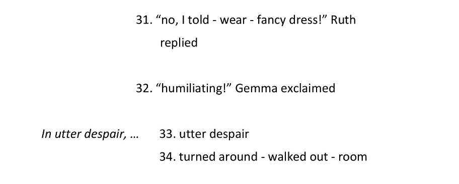 - “thought – you said – fancy dress!” Gemma questioned her – desperately