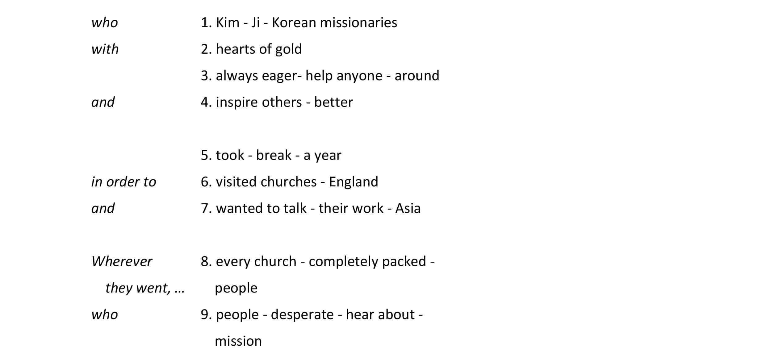 Kim and Ji are Korean missionaries. They have hearts of gold and are always eager to help anyone around them. Also, they inspire others to be better.