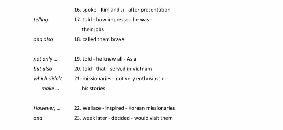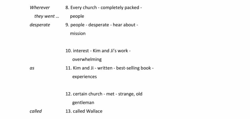 In a certain church, they met a strange, old gentleman, called Wallace. He didn’t have a family but lived with his cat. He spoke to Kim and Ji after their presentation and told them how impressed his was by their jobs. Also, he called them brave. He told them that he knew all about Asia and that he had served in Vietnam, but the missionaries weren’t very enthusiastic about his stories. Even so, Wallace was inspired by the Korean missionaries, so, a week later, he decided that he would visit them.