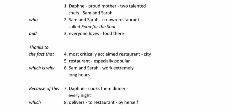 Daphne is the proud mother of two talented chefs, Sam and Sarah, who co-own a restaurant called Food for the Soul. This is the most critically acclaimed restaurant in the city, and everyone loves the food there. Because the restaurant is so popular, it means that Sam and Sarah work awfully long hours, so Daphne cooks them dinner each night and delivers it to the restaurant.