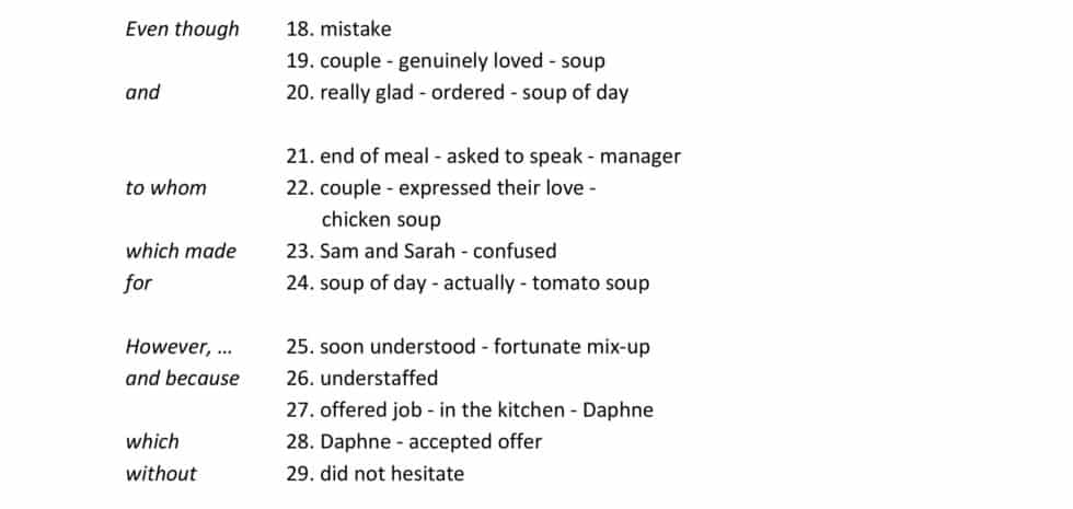 At the end of the meal, they asked to speak to the manager to whom they expressed their love for the chicken soup which made Sam and Sarah confused, for the soup of the day was actually tomato soup. However, they soon understood the fortunate mix-up, and because they were understaffed, they offered a job in the kitchen to Daphne, which she accepted without hesitation.
