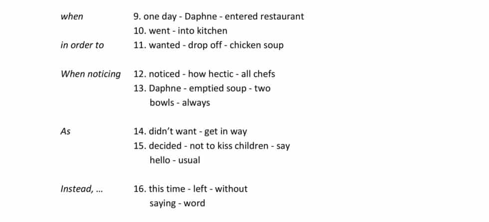 One day, when Daphne had entered the restaurant, she went into the kitchen in order to drop off the chicken soup. When noticing how hectic all the chefs were, Daphne emptied the soup into two bowls as always. As she didn’t want to get in the way, she decided not to kiss her children or say hello as usual. Instead, this time she left without saying a word.