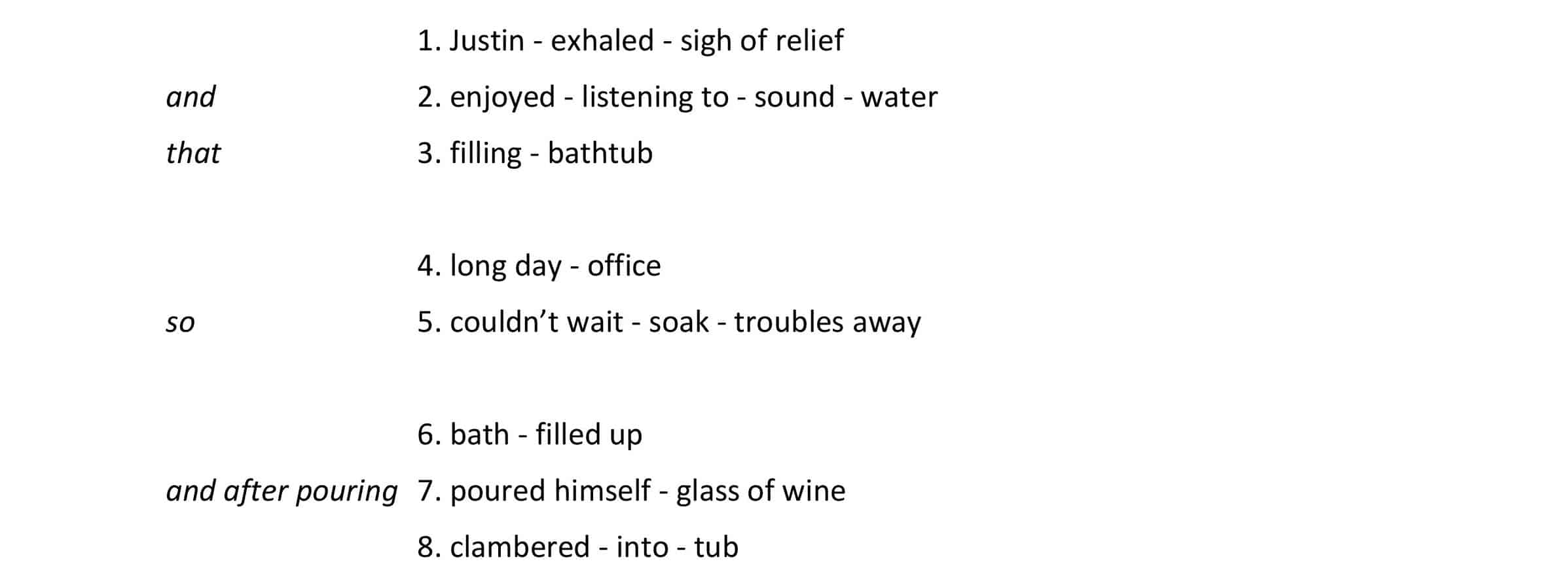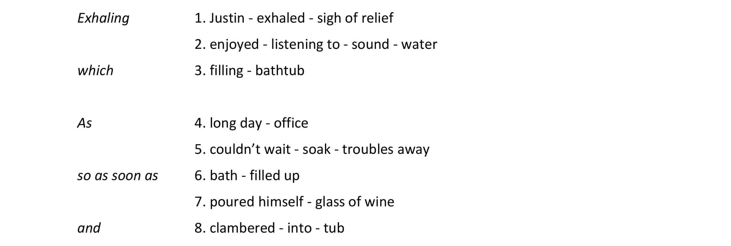 Justin exhaled a sigh of relief and enjoyed listening to the sound of water that was filling his bathtub. It had been a long day at the office, so he couldn’t wait to soak his troubles away. The bath filled up, and after pouring himself a glass of wine, he clambered into the tub.