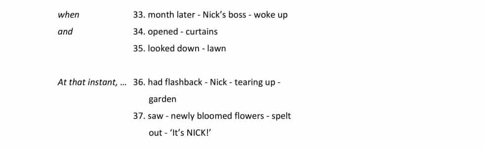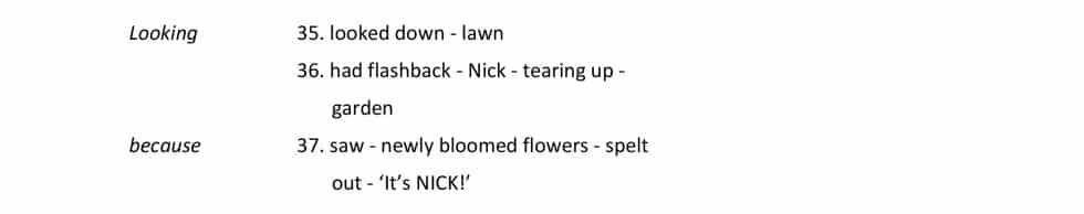 36. had flashback – Nick – tearing up – garden