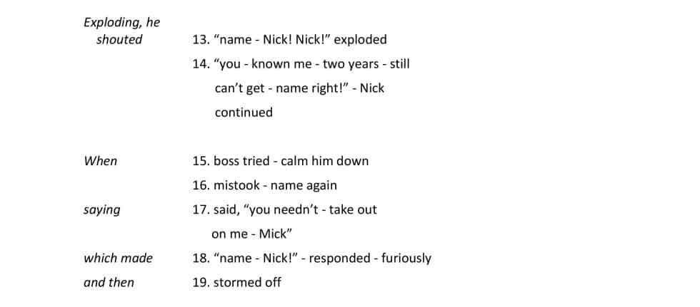Nick had had enough, and a red mist filled his eyes. Exploding, he shouted, “My name is Nick! Nick! You have known me for two years and still can’t get my name right!”