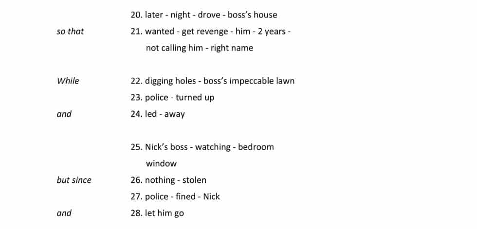 Suddenly, the police turned up at the house and Nick’s boss was staring down at him from his bedroom window. Because nothing had been stolen, the police fined Nick and let him go. Nick’s boss also forgave him because of the difficult day he was having. Nick continued to work for his boss but avoided him as much as possible, and they both soon forgot about the incident.