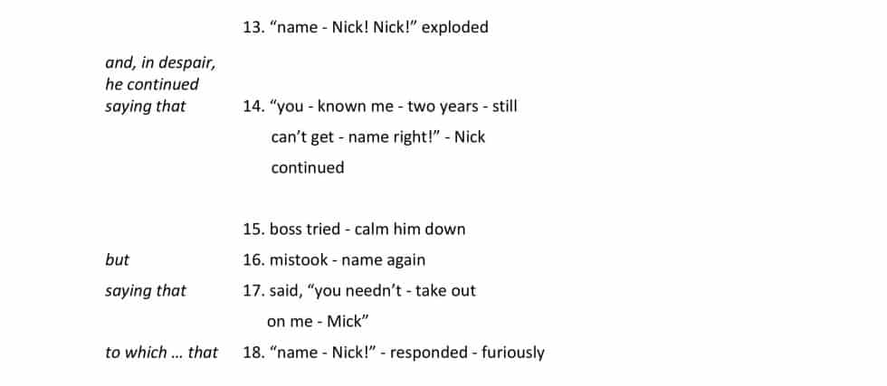14. “you – known me – two years – still can’t get – name right!” Nick continued